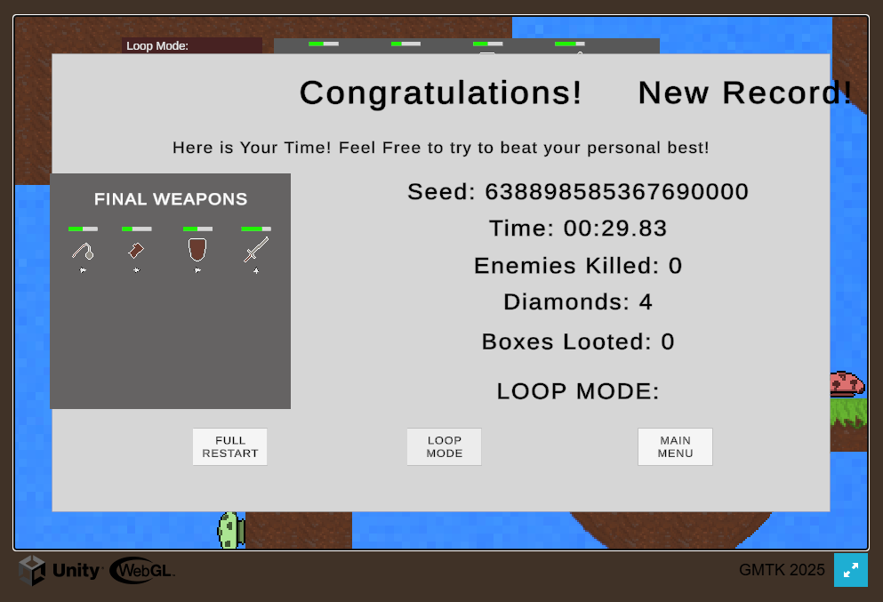 ("LOOP MODE:" shows that this time was scored on a later loop, not on the first play through)